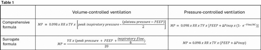 Alternatively, MP can be calculated using mode-specific formulas (see Table 1). The comprehensive equation offers greater precision, and the surrogate formula is for bedside simplicity, but both offer good approximation for clinical use.3